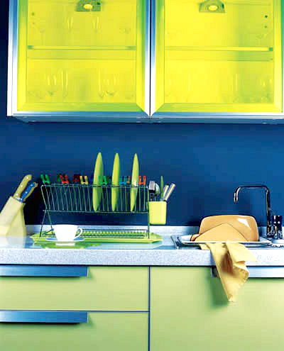 巧妙地利用色彩的特征,就能创造出空间的高宽深作视觉上的调整。厨房空间过高,可以用凝重的深色处理,使之看起来不那么高;太小的房间,用明亮的颜色,运用淡色调,使之产生宽敞舒适感。采光充分的厨房可以用冷色调来装饰,以免在夏日阳光强烈时变得更炎热。