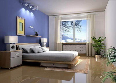 炎热的季节,进入卧室时最渴望找到一份凉爽的感觉。怎样才能满足这种需要?一蓝到底的色彩运用,原木的单纯触感,是卧室的打造重点。