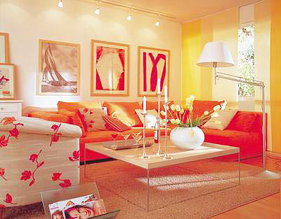 通常红色、橙色、金黄、棕色是冬天的主角,一套红色的沙发足以成为整个居室的亮点。冬天,可以把客厅里素色的沙发套换掉,再套上暖色调的沙发套,整个房间立刻会有一种阳光般温暖的感觉。“如果有些家庭接受不了非常艳丽的红色,那也可以用红色来点缀。比如浅咖啡色的沙发套,配上火红的沙发靠垫,那样效果也不错。”设计师介绍,如果不喜欢红色,橙色也是不错的选择。 海装潢网上