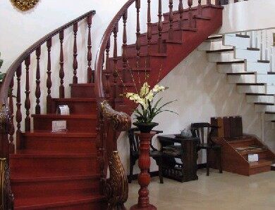 第四、楼梯各部分应反映整套房间的风格。富有时代气息的设计,楼梯通常采用条纹清晰,着色轻微或者用自然原色的踏板,再配以设计简单的扶手。比较古雅的房间,楼梯则可采用形状高纤的栏杆柱以及涂上较深颜色、设计华美的扶手。