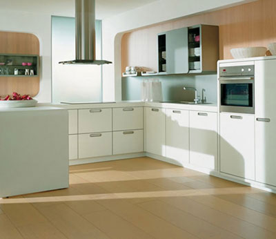 厨房中的台面、吊柜必须依人体工程学原理设计,以东方人的体形而言,厨房中的工作台面高度应该为85厘米,深度60厘米,吊柜应该为37厘米。