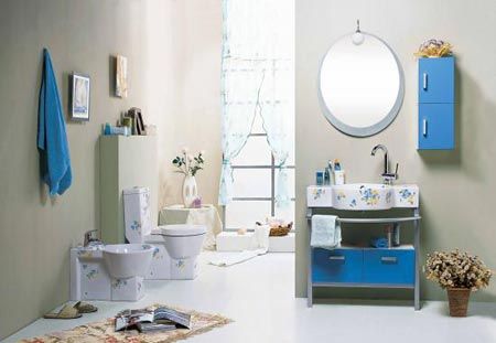 浴室中最理想的色调是粉色系,例如:粉红、淡绿、淡蓝及桃红色等。其次则是奶油色系,或是一些中性色,如:黑色及白色。装饰物及毛巾等配件则可选择强烈的对比色系。
