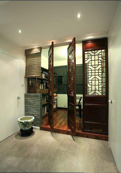 用屏风打造可以翻转的书房门在隔与露之间找到微妙的平衡。