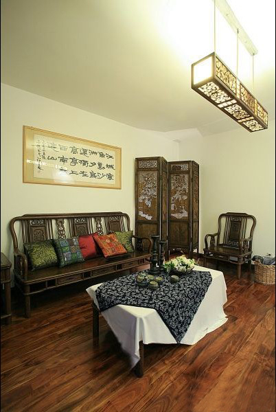 这个会客厅,蓝底白花的茶几布,仿佛一下子让我们回到那个赏荷听曲的小院里。