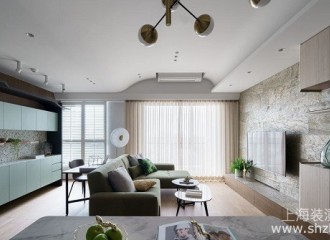 46平米现代风格住宅,莫兰迪绿主色调营造甜蜜生活