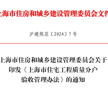 市住建委发布《上海市住宅工程质量分户验收管理办法》