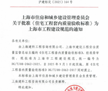 上海市工程建设规范《住宅工程套内质量验收标准》发布