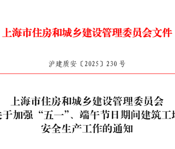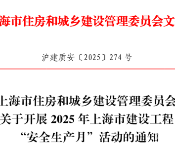 市住建委关于开展2025年上海市建设工程“安全生产月”活动的通知