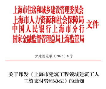 市住建委印发《上海市建筑工程领域建筑工人工资支付管理办法》通知