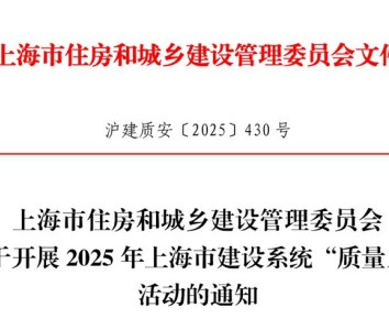 市住建委通知开展2025年上海市建设系统“质量月”活动