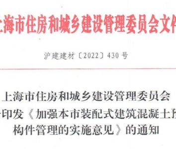 住建委印发通知加强本市装配式建筑混凝土预制构件管理