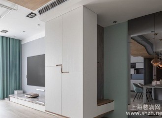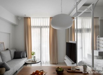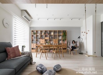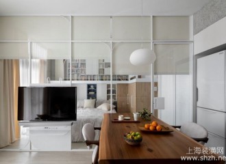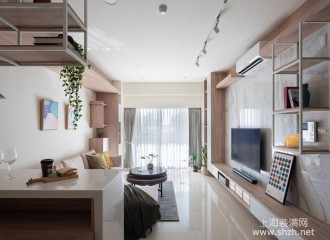北欧风格小户型装修:系统板材、穿透感电视墙、空中书廊谱写优雅生活