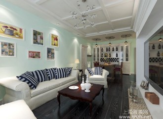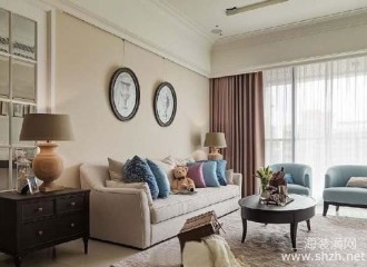 三室两厅清爽美式风格装修设计:空间充满自然舒适浪漫情调
