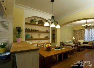 美式乡村风三室两厅装修设计案例:用木呈现温馨
