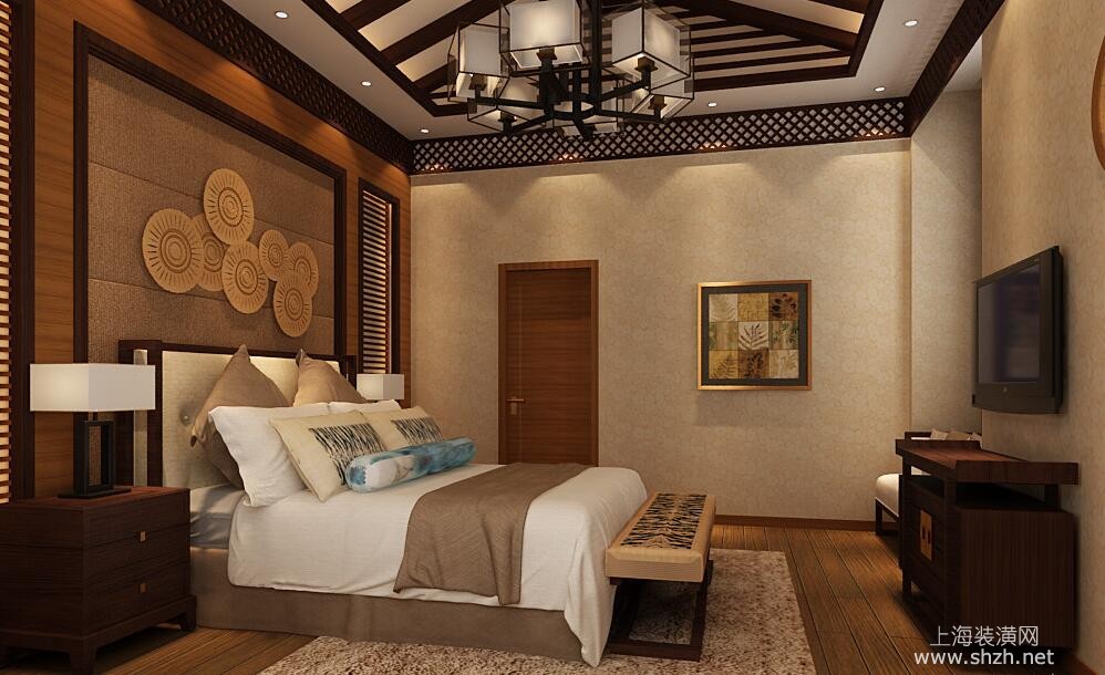 卧室设计 - 别墅装修新中式风格设计,上海腾龙别墅设计