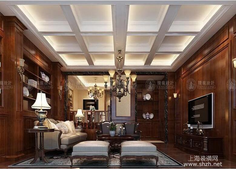 客厅 - 长泰西郊御园别墅装修新美式风格设计,上海腾龙别墅设计师孙明安作品,欢迎品鉴