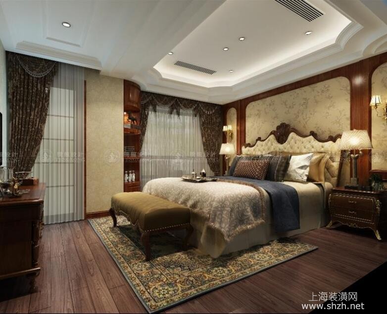 卧室 - 徐汇新城别墅装修美式风格设计方案展示,上海腾龙别墅设计师祝炯作品,欢迎品鉴