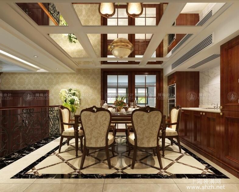 餐厅 - 徐汇新城别墅装修美式风格设计方案展示,上海腾龙别墅设计师祝炯作品,欢迎品鉴