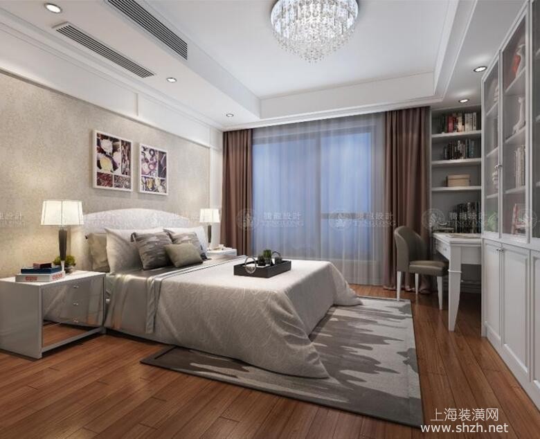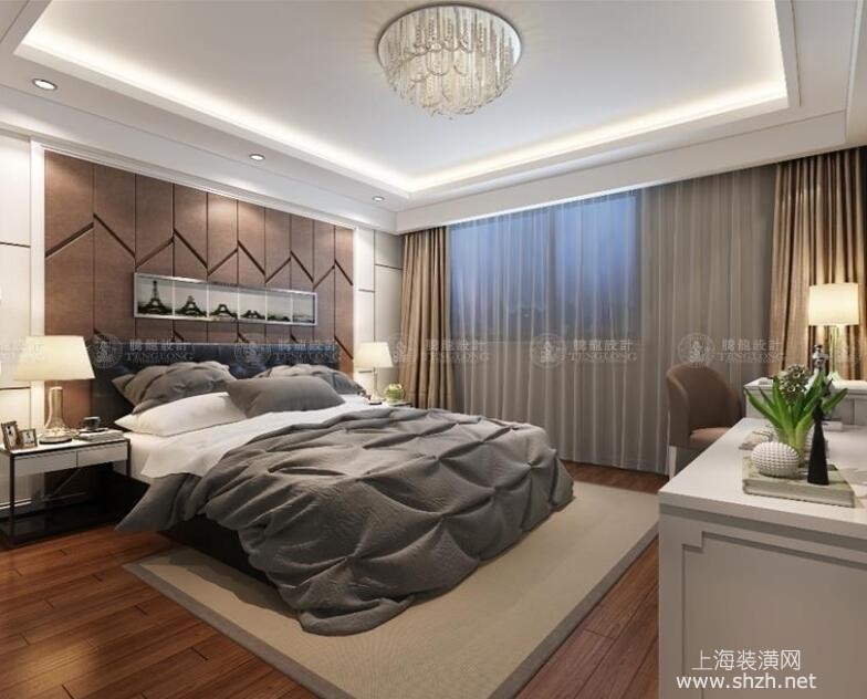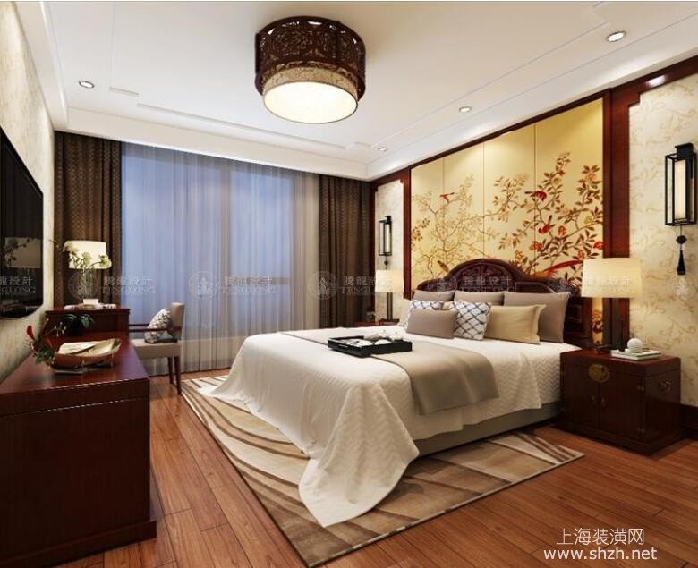 卧室2 - 崇明县玉环路98弄天赐景城别墅装修新中式风格设计,上海腾龙别墅设计师祝炯作品,欢迎品鉴