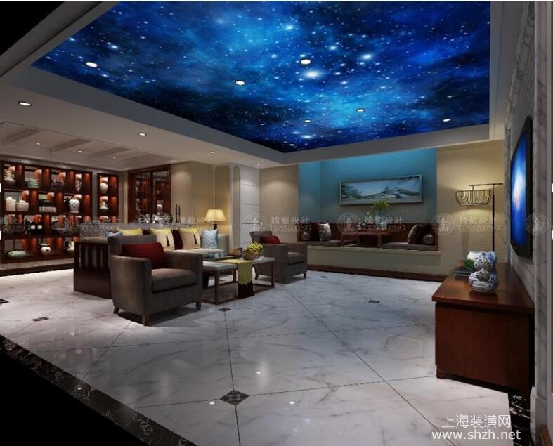 休闲区 - 崇明县玉环路98弄天赐景城别墅装修新中式风格设计,上海腾龙别墅设计师祝炯作品,欢迎品鉴