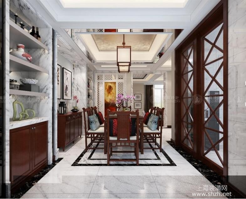 天赐景城295平别墅装修新中式设计-效果图