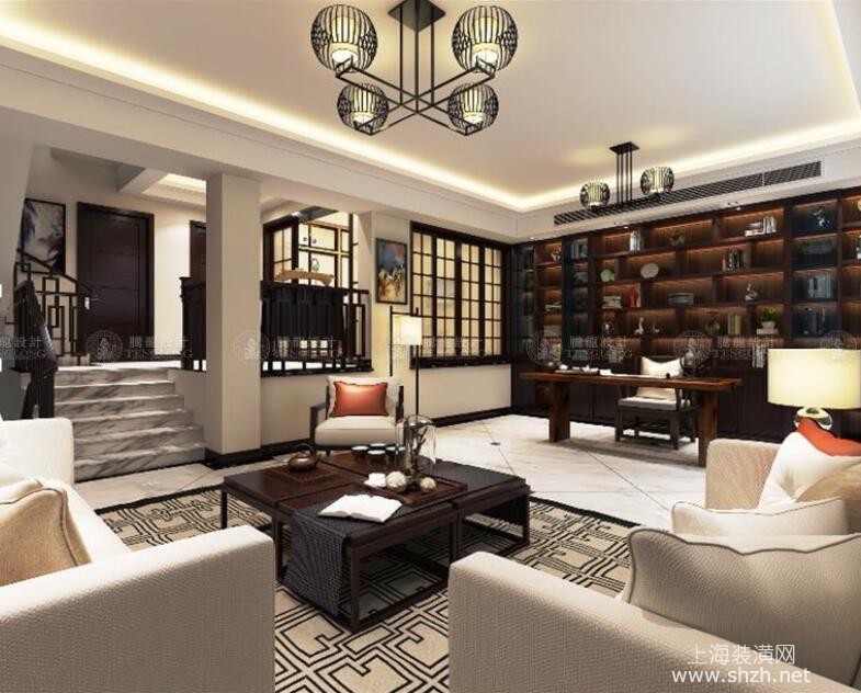 客厅 - 绿地海域观园别墅装修现代风格设计方案展示,上海腾龙别墅设计师祝炯作品,欢迎品鉴