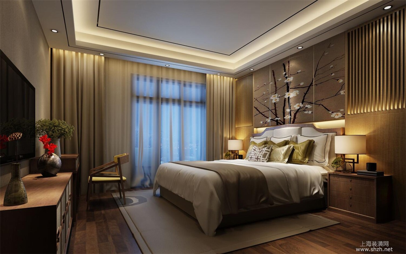 卧室 - 客户是三代同堂,男主人是德国汉高企业高管,平时工作较忙周末有时间,喜欢传统文化,注重实用性,女主人大众合资企业工作,一两岁女儿,父母同住。老人喜欢盆景收藏