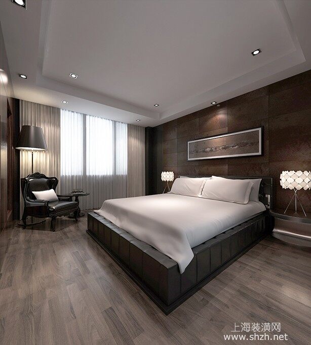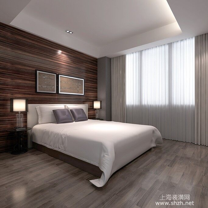 卧室 - 卧室色调以灰色为主,墙面背景同样使用木饰面。