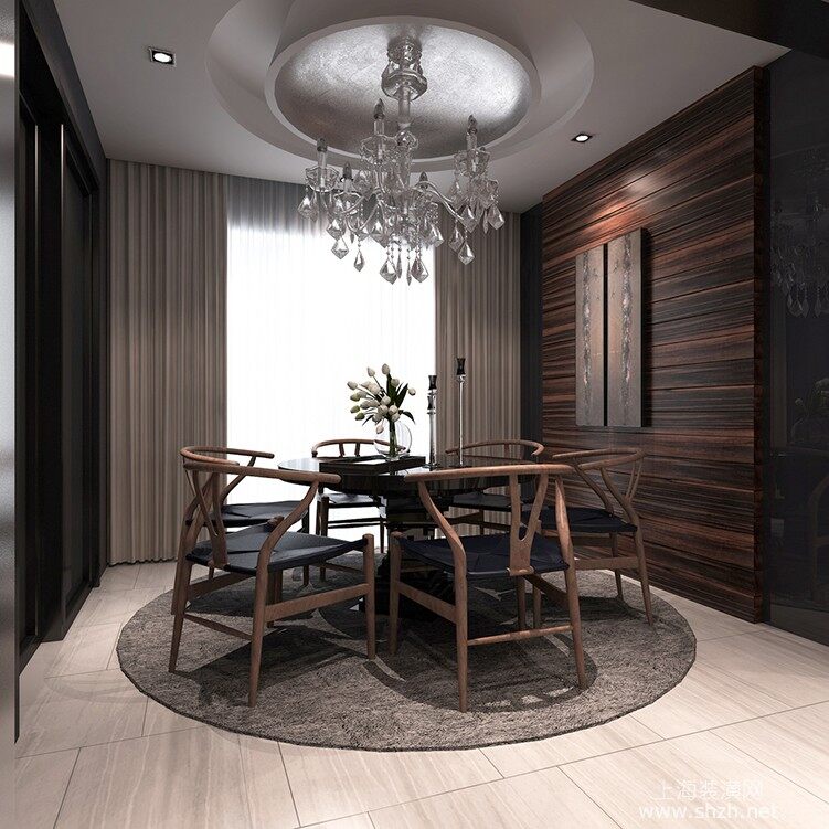 餐厅 - 餐厅风格上有点偏中,圆形吊顶郁地面地毯相互呼应。