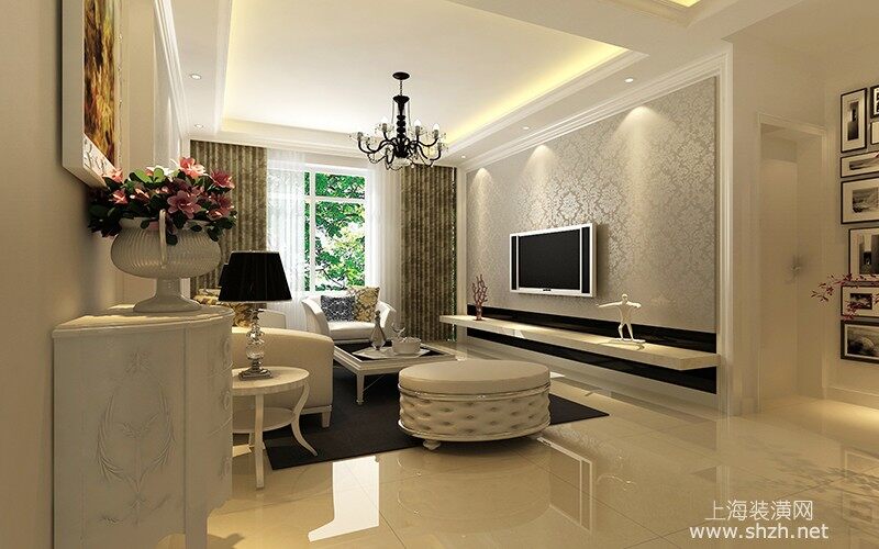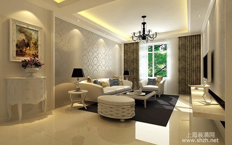 客厅 - 本案例为欧式风格,户型为三室两厅一厨一卫。