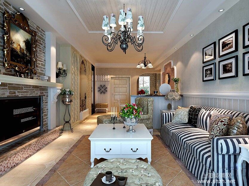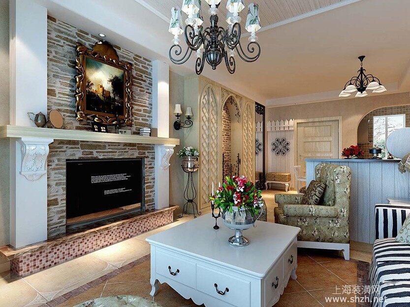 客厅 - 本案例风格为田园风格,户主是个年轻女士,对田园风格特别热衷,经过设计师的不懈努力终于设计出了令客户满意的效果。