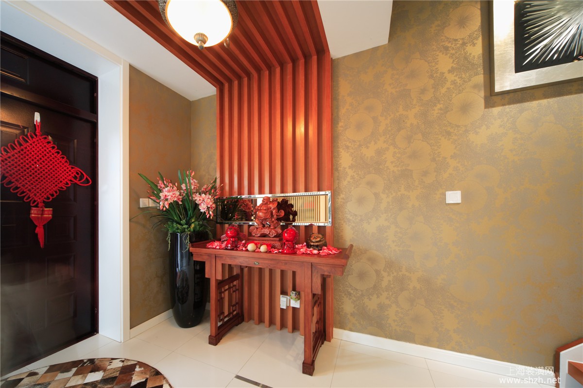 别墅现代简约.jpg - 进门的玄关处采用了木饰面装饰,对于业主是生意人的特性,设计了供台位置,整个客厅的分水位在这里淋漓尽致。