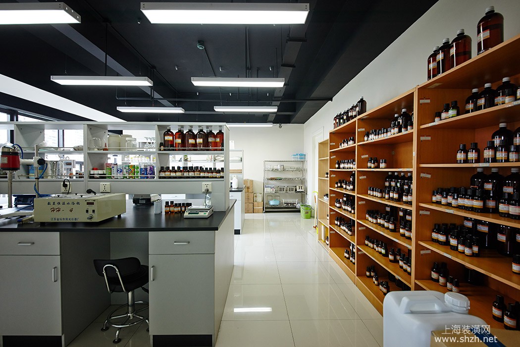 办公楼现代简约装修展示柜.jpg - 实验室的整体设计考虑整个区域的规划和划分,以及通风效果,地面采用了地砖,部分墙面为墙砖,
