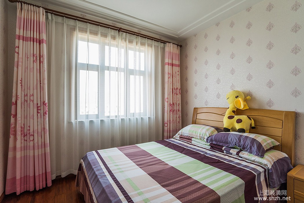 三室两厅混搭风格儿童房.jpg - 整体紫色的卧室显得温馨浪漫,少女情怀在点滴的装饰中体现出来。