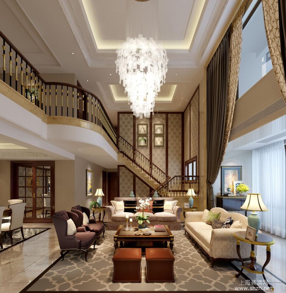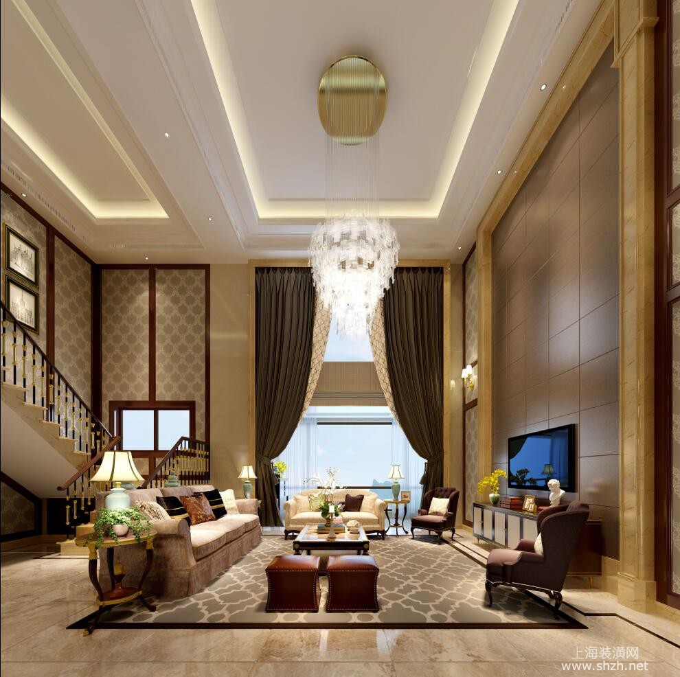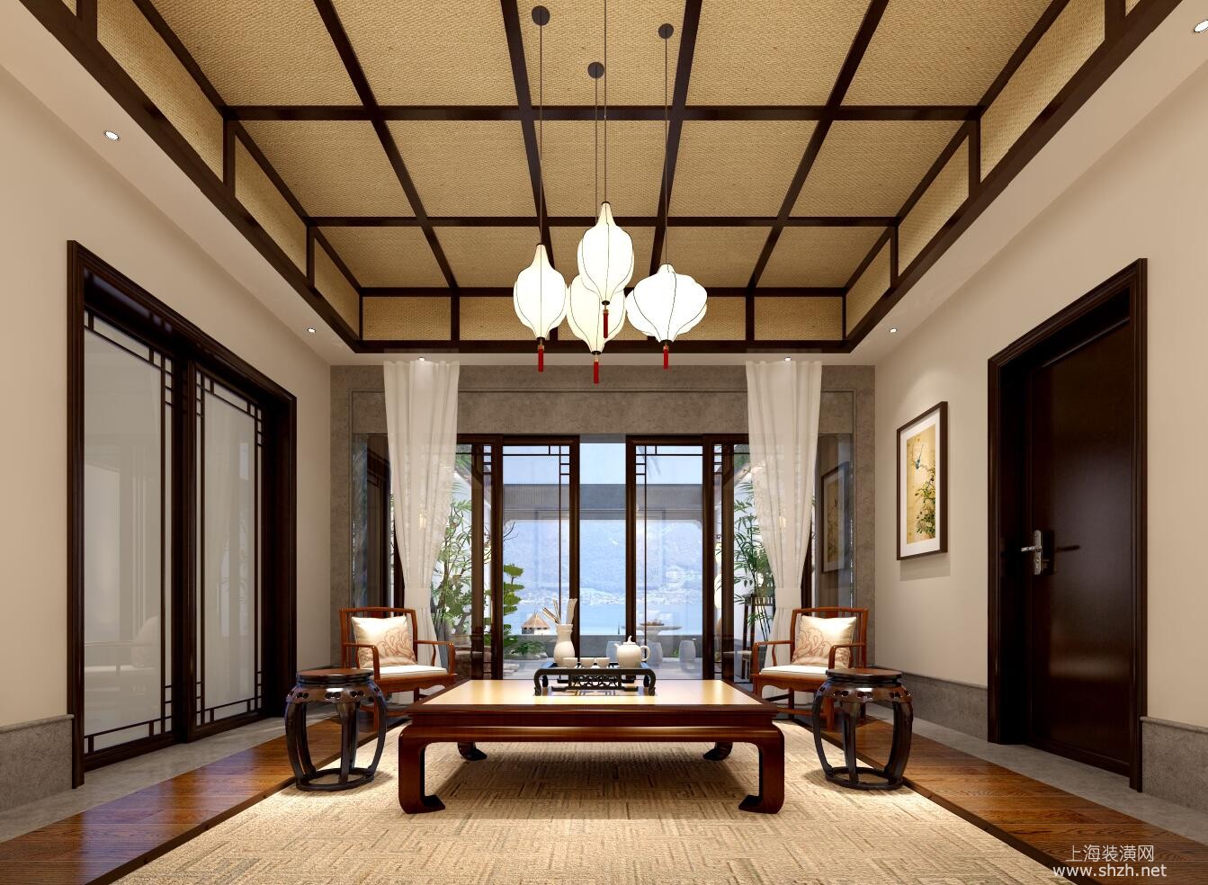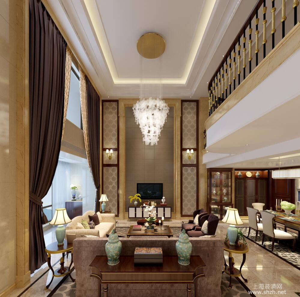 客厅 - 别墅装修新中式风格设计,上海腾龙别墅设计