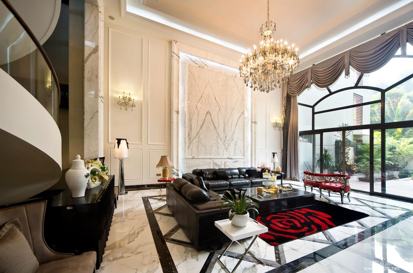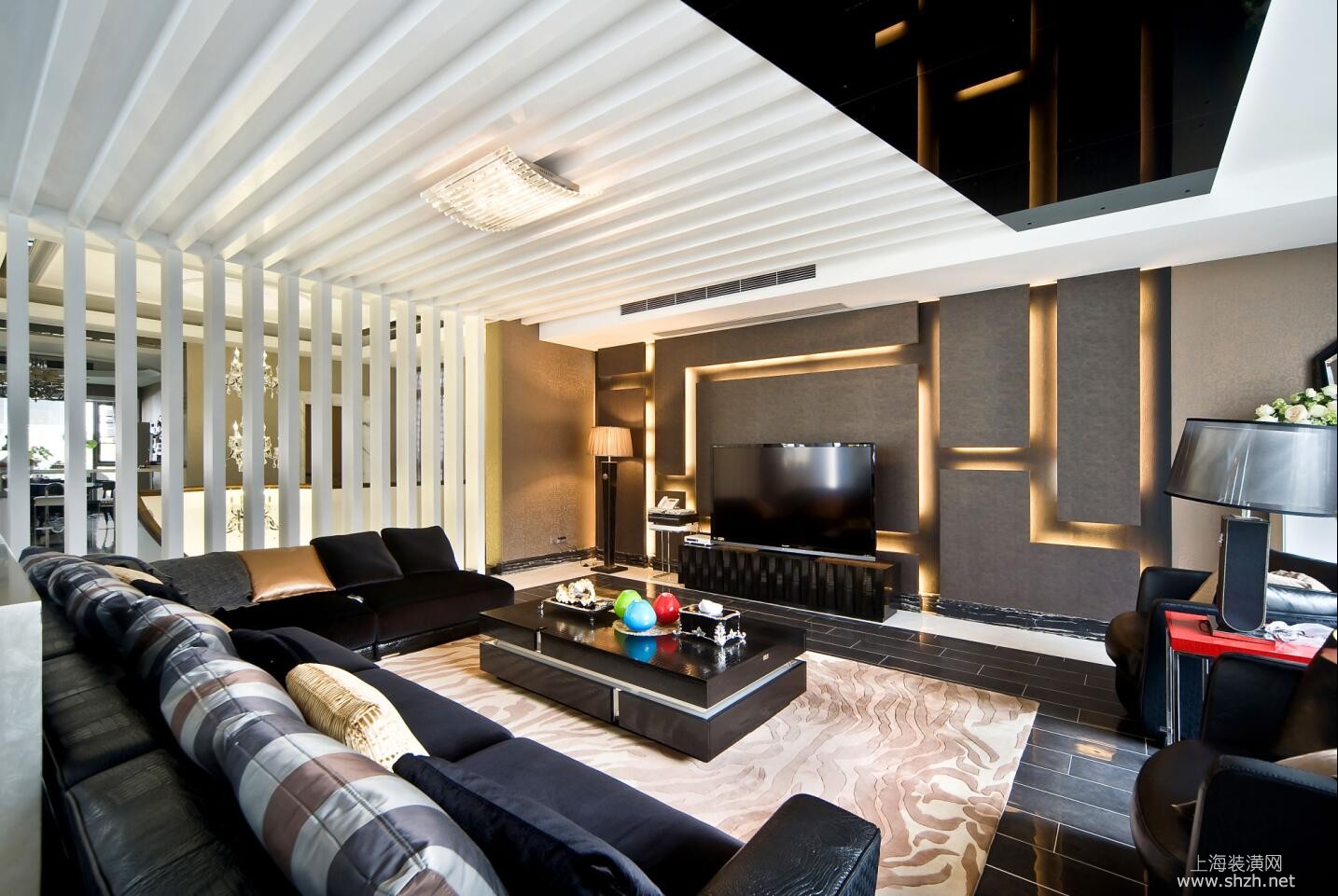 客厅 - 御翠园别墅装修现代风格设计,上海腾龙别墅设计