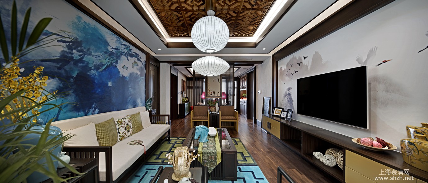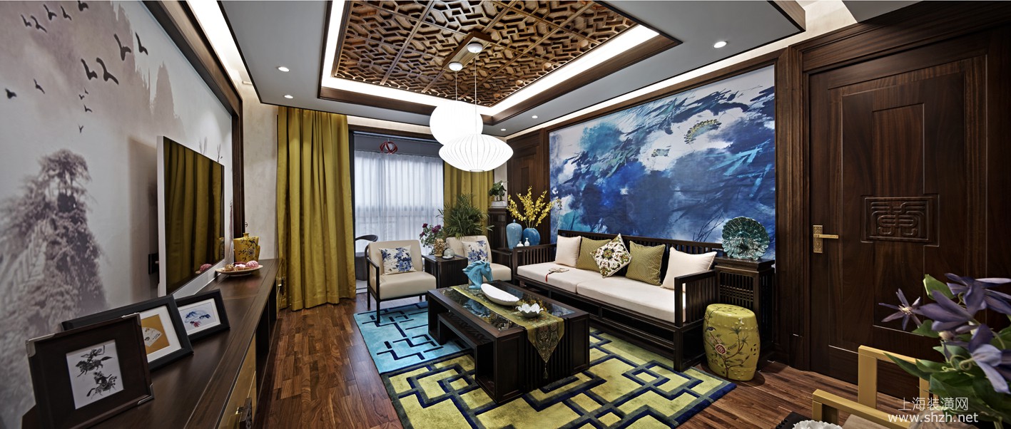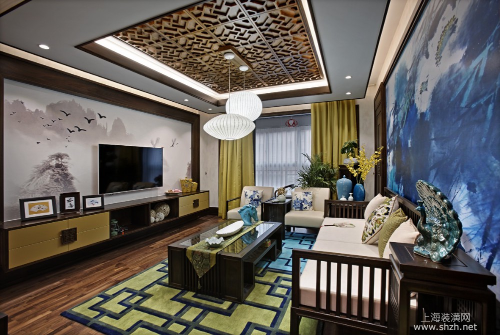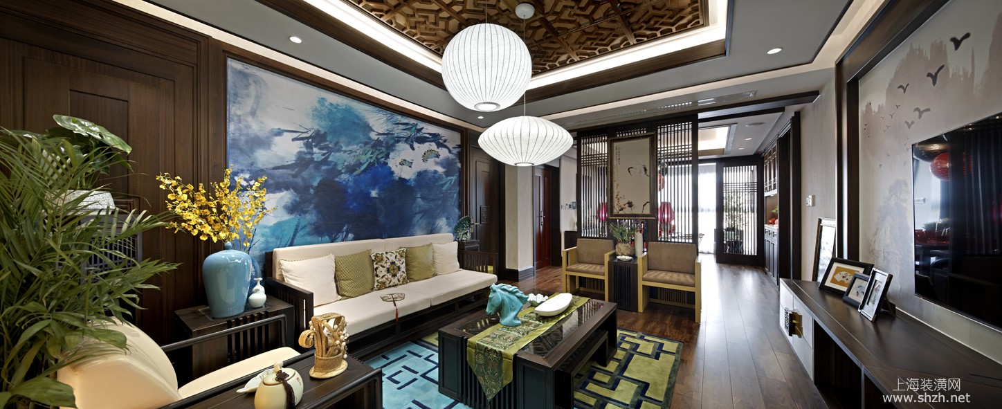 客厅 - 碧云壹零别墅装修新中式风格设计,上海腾龙别墅设计