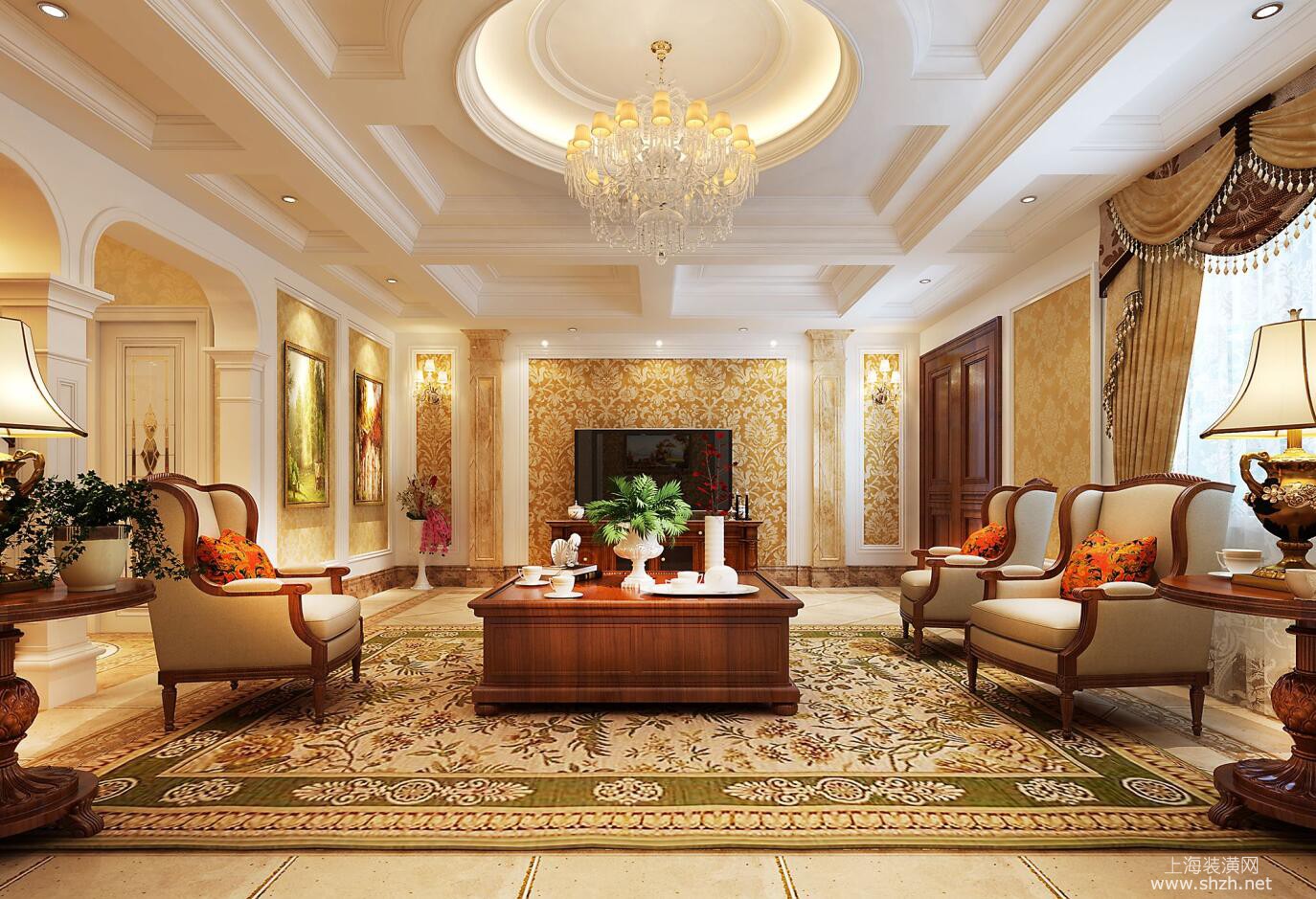 客厅 - 保利蔚蓝林语别墅装修欧式风格设计,上海腾龙别墅设计