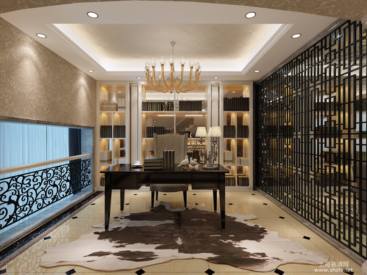 书房 - 碧云壹零别墅装修后现代风格设计方案,上海腾龙别墅设计
