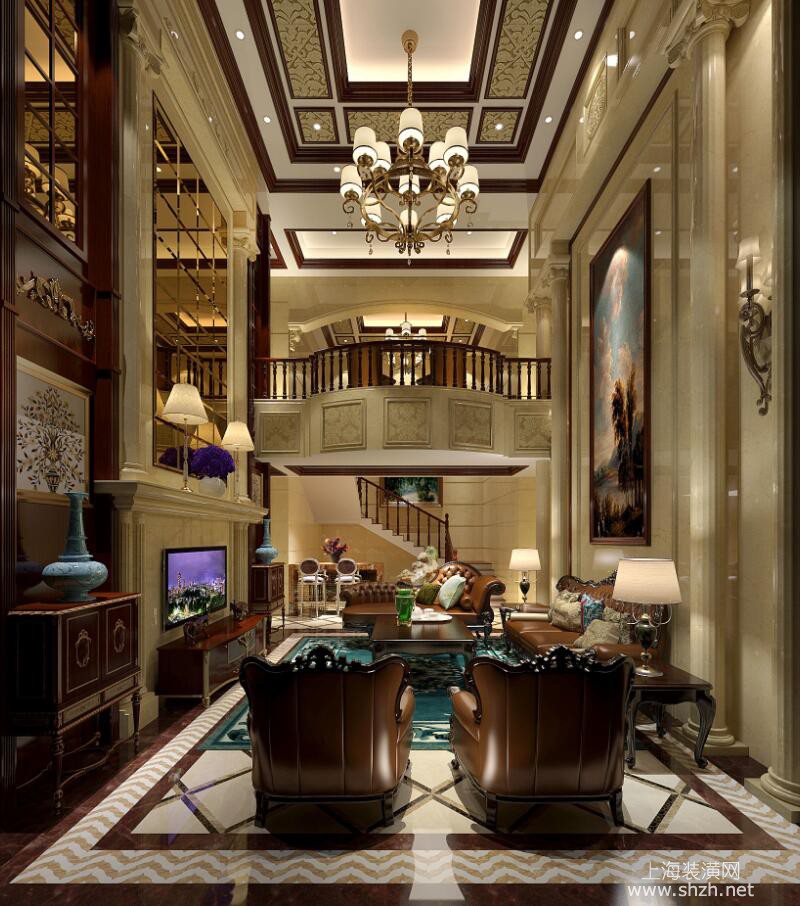 客厅 - 法兰西世家别墅装修设计方案,上海腾龙别墅设计咨询预约电话 15800615719
