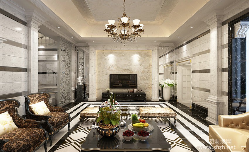 客厅 - 保利蔚蓝林语保利湖畔林语叠加别墅装修设计方案,上海腾龙别墅设计