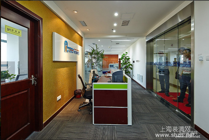 嘉定金元大厦办公室装修1.png - 打破单一、整齐的格局,打破原寂静的空间;华堂上方呼应以直线为主调、大笔勾勒而出的时尚型弧面吊顶,大直大方显示出强烈的纵深感