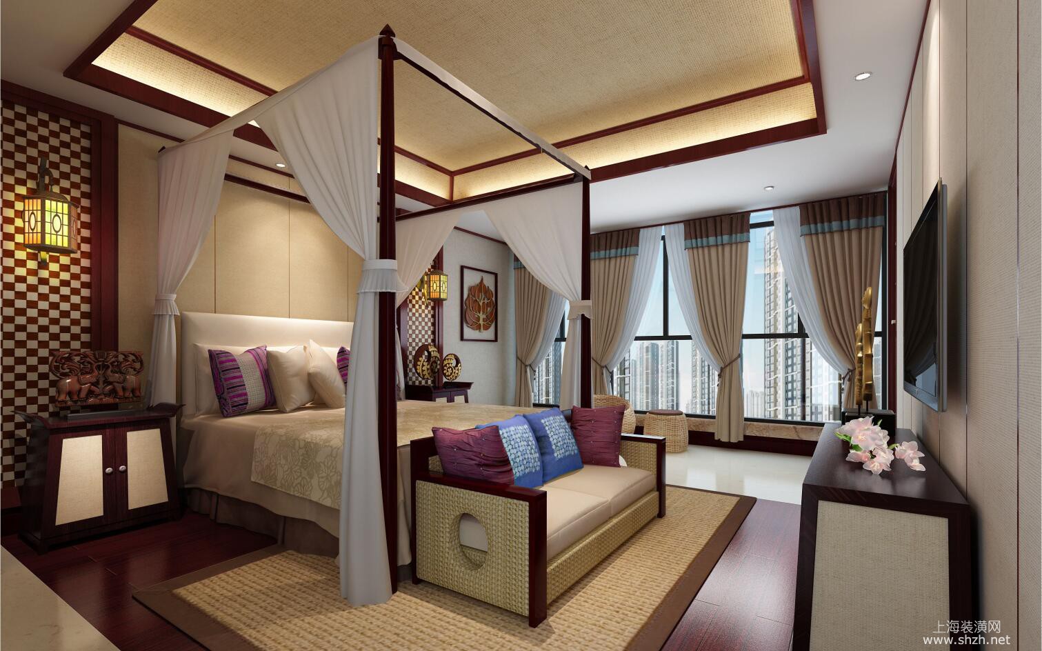 卧室 - 别墅装修东南亚风格设计方案,上海腾龙别墅设计