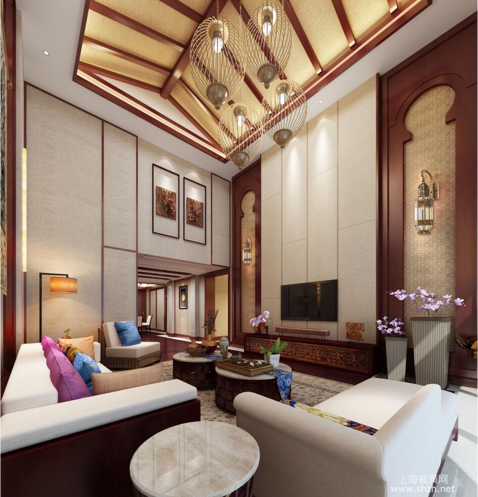 客厅 - 别墅装修东南亚风格设计方案,上海腾龙别墅设计