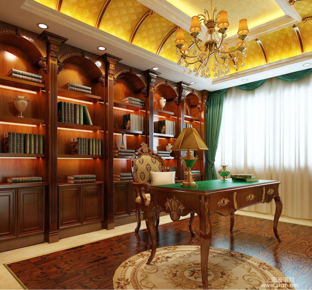 书房 - 别墅装修美式风格设计,上海腾龙别墅设计最新设计作品