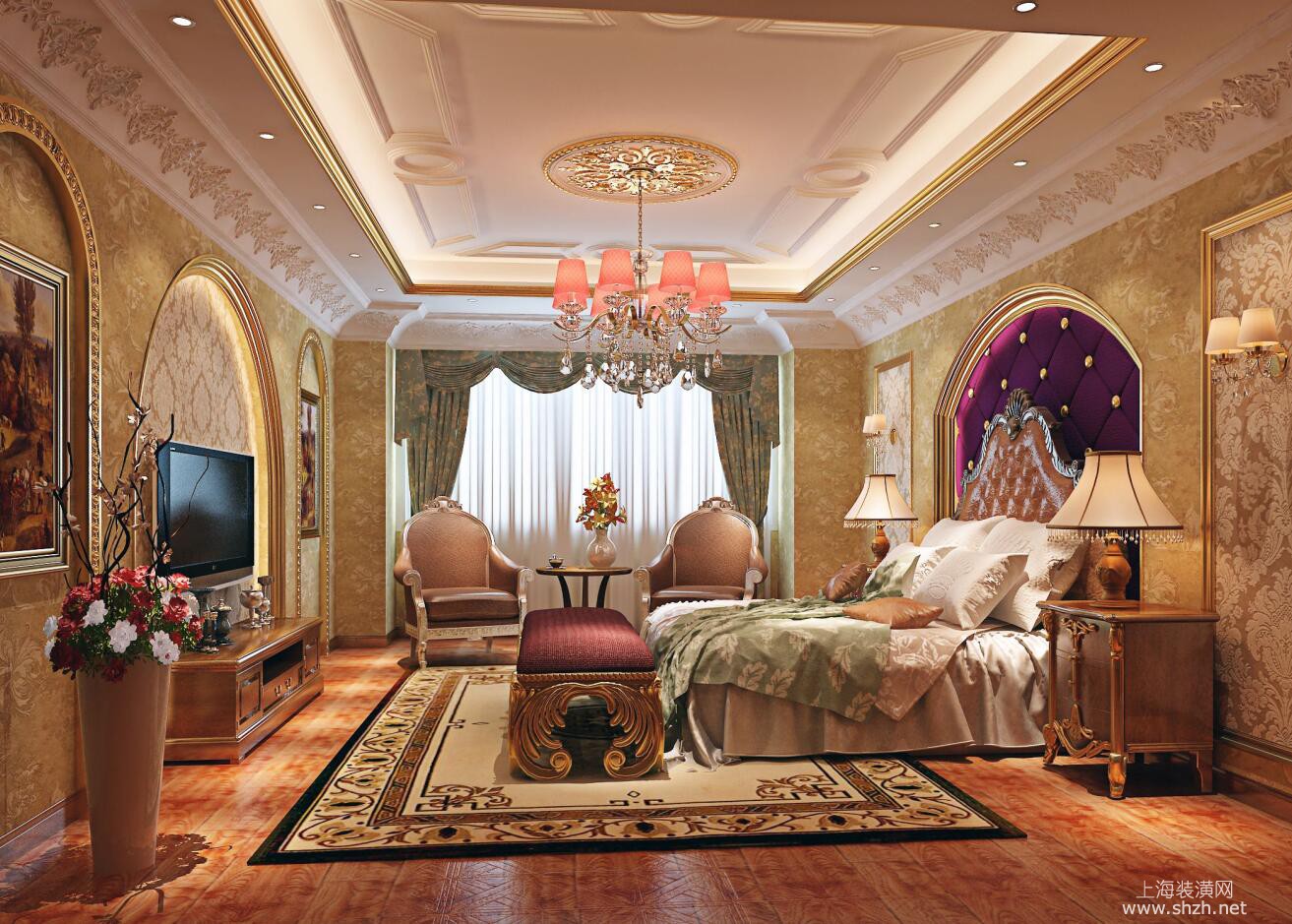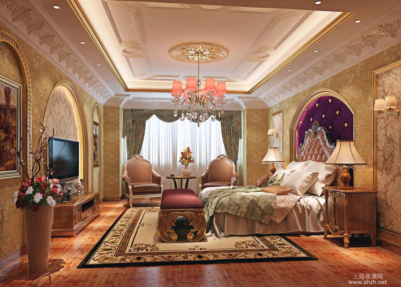 卧室 - 别墅装修美式风格设计,上海腾龙别墅设计最新设计作品