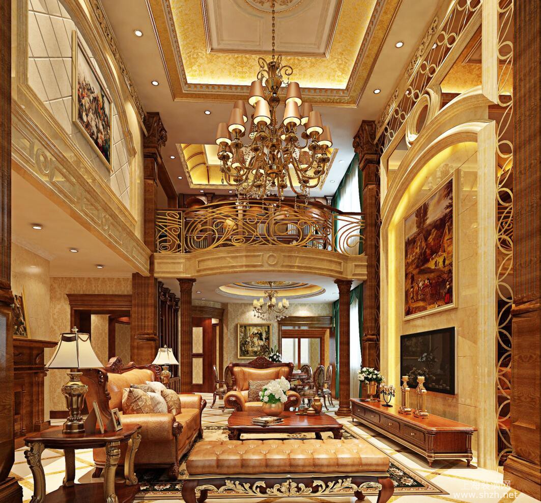 客厅 - 别墅装修美式风格设计,上海腾龙别墅设计最新设计作品