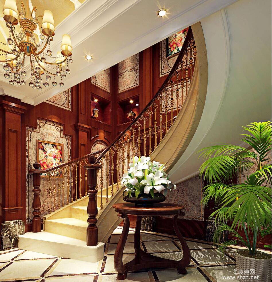 玄关 - 别墅装修美式风格设计,上海腾龙别墅设计最新设计作品