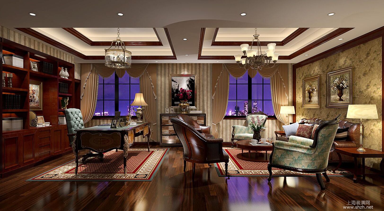 书房 - 别墅装修美式风格设计,上海腾龙别墅设计作品展示!
