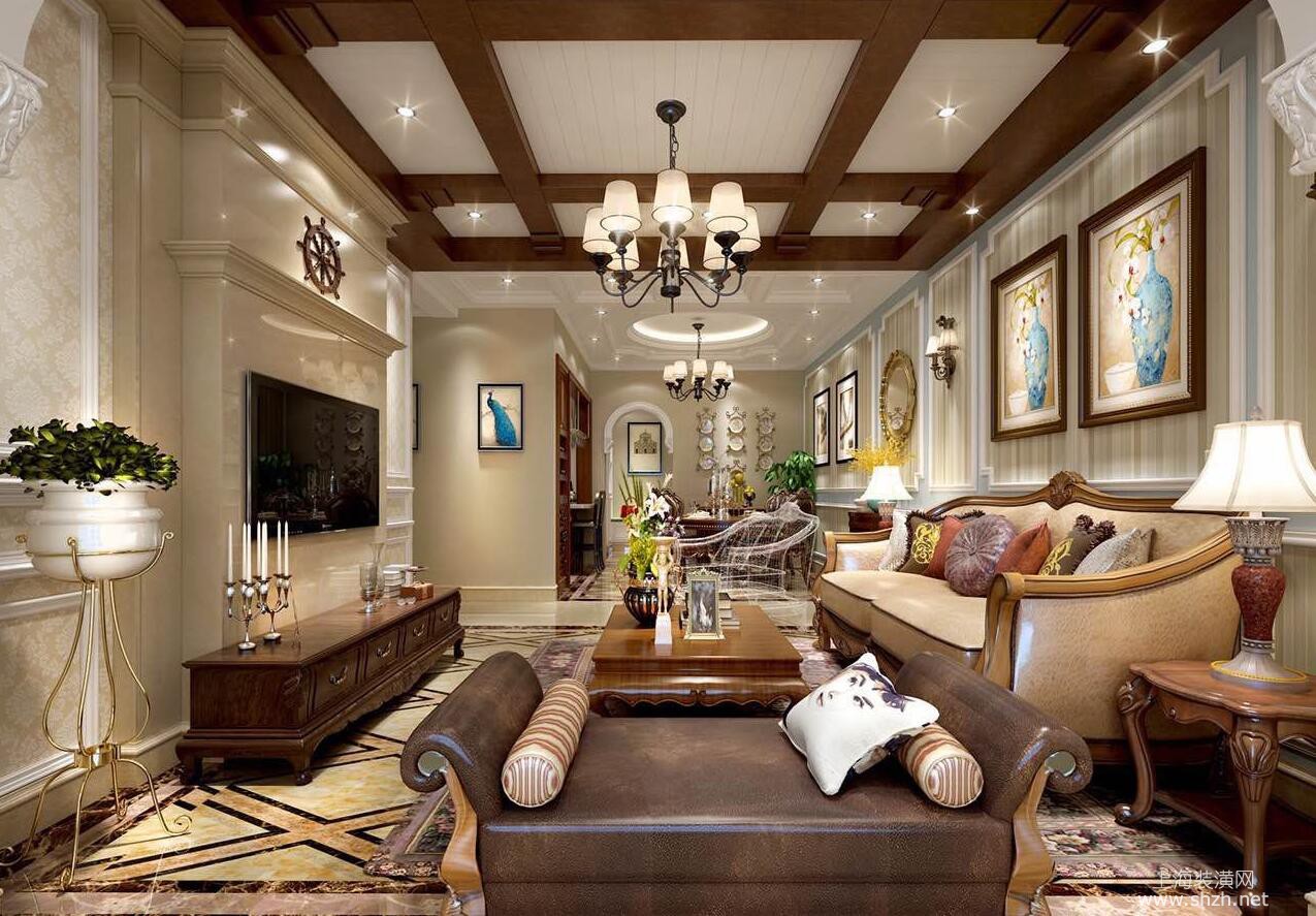 客厅 - 别墅装修美式新古典风格设计,上海腾龙别墅设计!